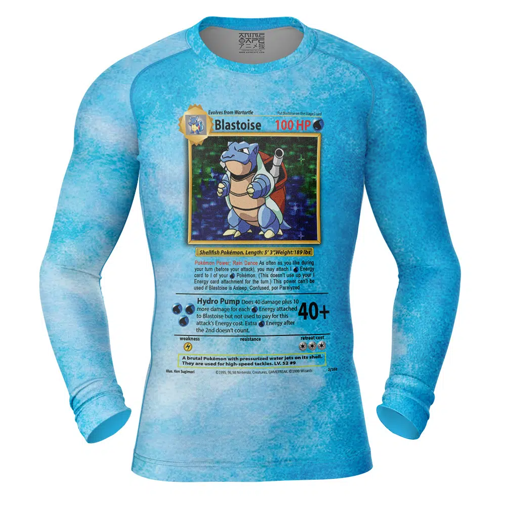 Blastoise Card V2 Pokemon Long Sleeve Rash Guard Compression Shirt