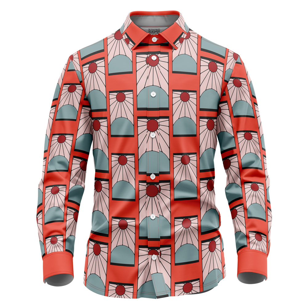 Hanafuda Earrings Demon Slayer Long Sleeve Button Up Shirt