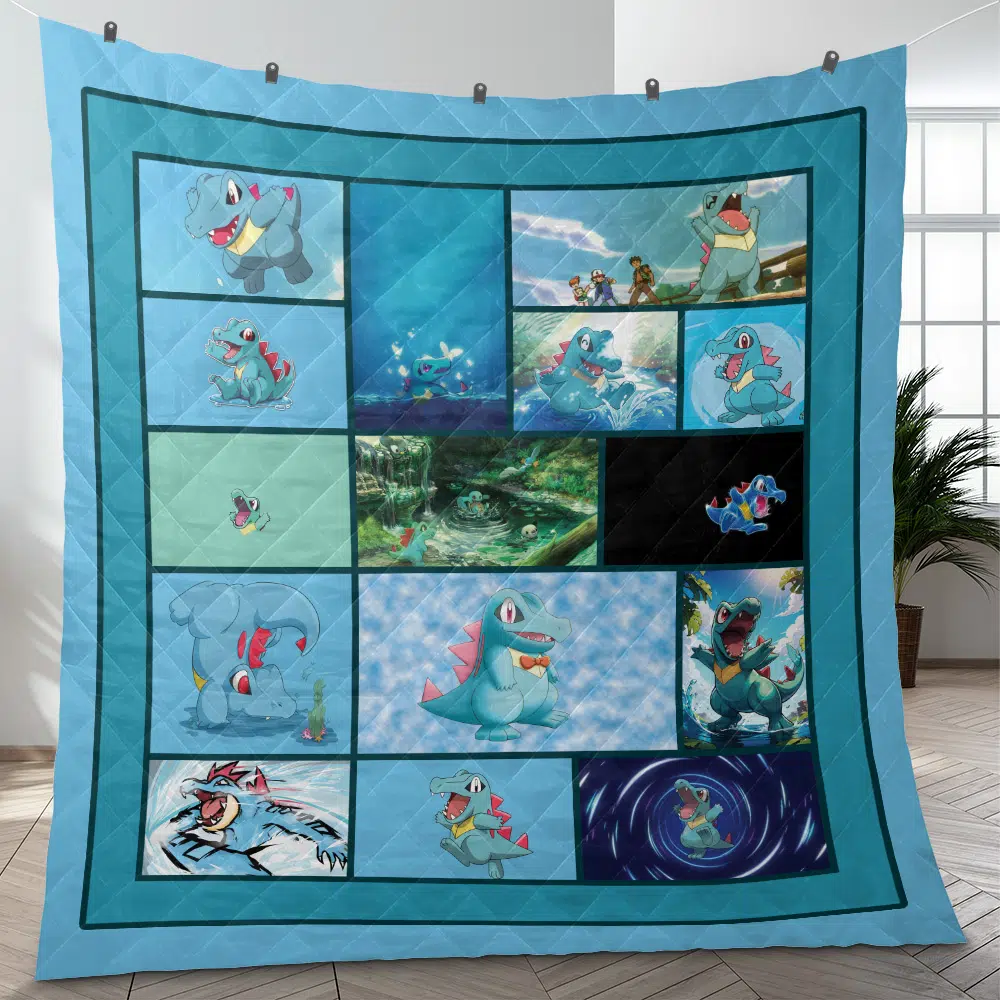 Totodile Collage Pokemon Quilt Blanket